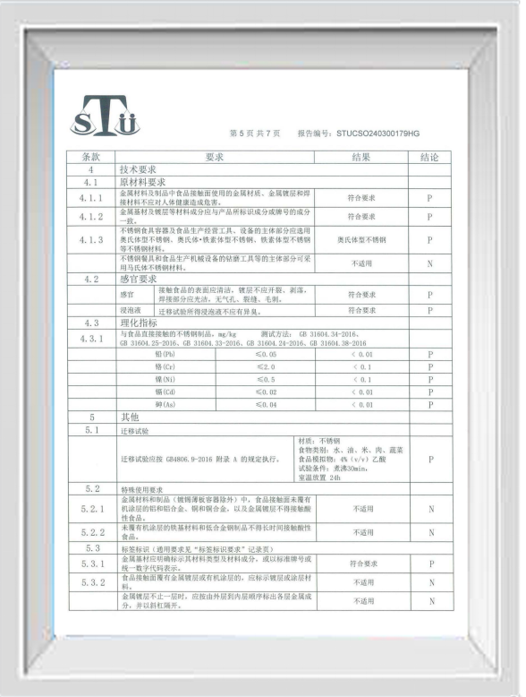 不锈钢食品接触检查报告